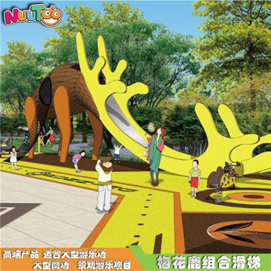 戶外大型動物兒童非標組合滑梯是目前比較常見的一種游樂設備,因為逼真的外形和好玩有趣的玩法項目,不禁成為了眾多小孩子青睞的一種游戲玩具。梅花鹿滑梯是樂圖游樂設備有限公司新推出的一種非標游樂產品,具有著高強耐磨性質,也是一度以來非常受捧的產品。梅花鹿滑梯屬于綜合型的運動器械,只有通過攀爬才能夠完成滑梯項目,比較適合于3歲以上的兒童玩耍,項目玩耍的強度并不大,比較適合于休閑和趣味性的項目。