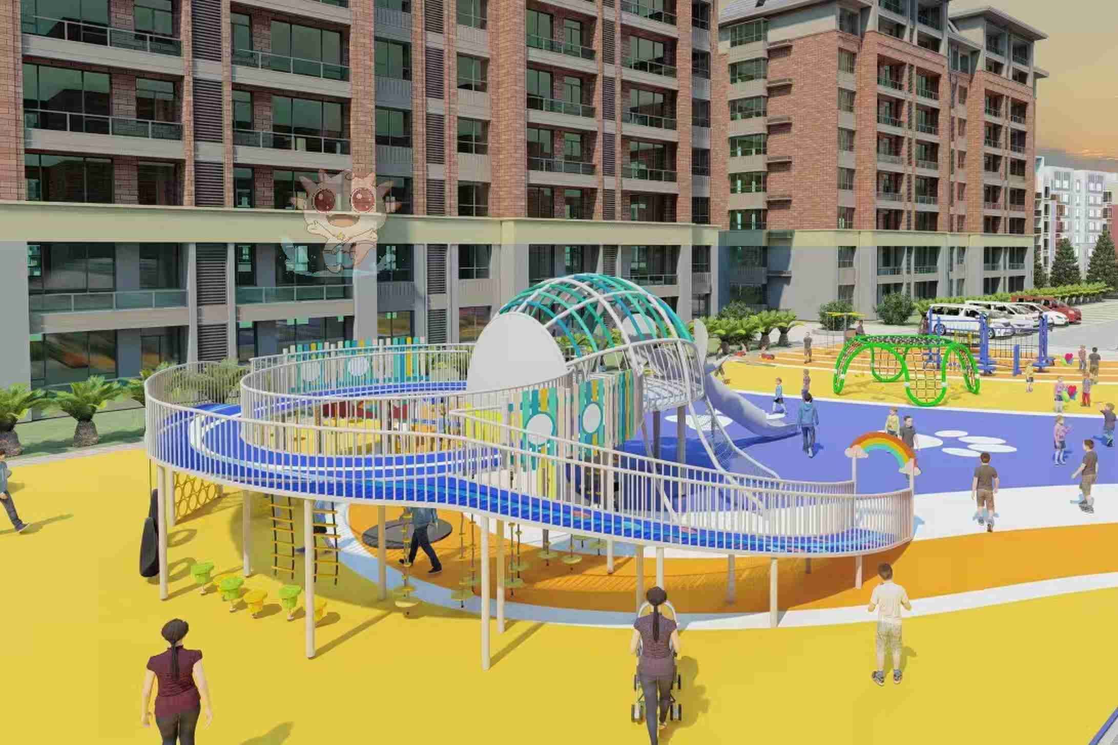 搭著玩:把幾種小型公園游樂設施放一起,比如攀爬網加個滑梯,游客玩得更多樣。