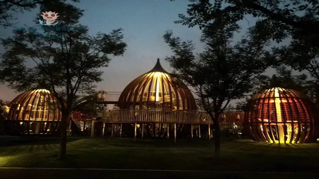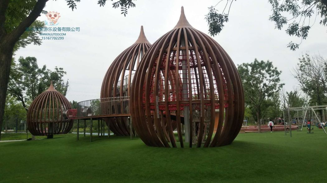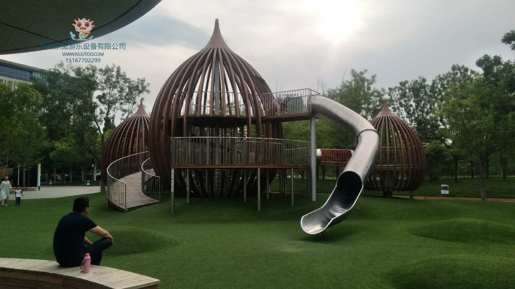在山西太原有一個大型公園,公園里面配有一個大型的核桃樹屋滑梯,滑梯的話是由多個核桃造型配合平臺結合在一組合而成,其中一個大核桃是分為上下兩層,下面一層的話是可以和其他兩個核桃屋聯合在一起的,上面一層的話是通往不銹鋼滑梯的入口,也可以當做一個觀望臺,像這種造型滑梯不管是放公園,小區,還是游樂場都是深受孩子們的喜愛的。