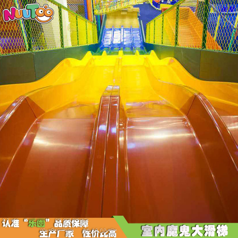 一個較好的幼兒園游戲設備需要有鮮艷的色彩視覺感,孩子們在年齡較小的階段對于色彩辨認比較敏感,并且鮮艷的顏色可以給孩子們帶來更好的預約心情。因為大型組合滑梯的占地面積也比較大,可以通過滑梯的顏色使孩子們更加活躍。色彩鮮艷的滑梯也更能讓孩子們有玩耍的欲望。