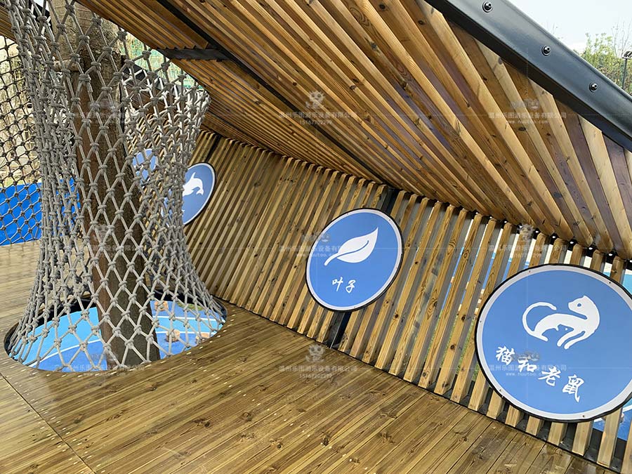 室外木質組合滑梯集鉆、爬、滑、刺、擺等功能于一體,可培養兒童的獨立個性、鍛煉能力、大腦和智力。該裝置具有任意性、無動力、交互性和安全性等特點。設計簡單,是幼兒園中必備的戶外大型玩具。
