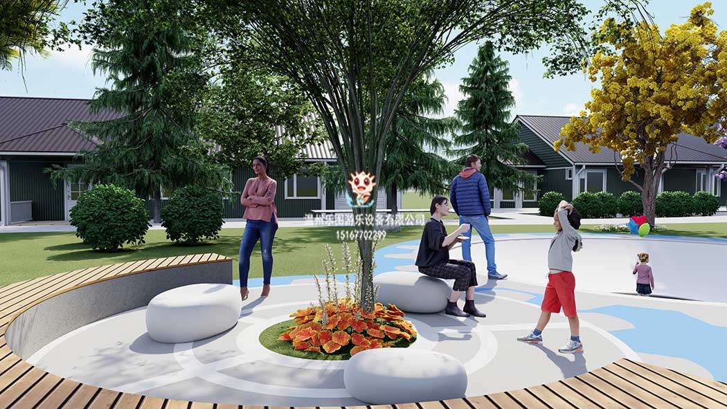 休息區也是戶外游樂場必不可少的部分。休息區的設計,有利于為帶孩子的家長提供坐的場地,也為孩子提供休息場地,放松身心,積蓄力量。