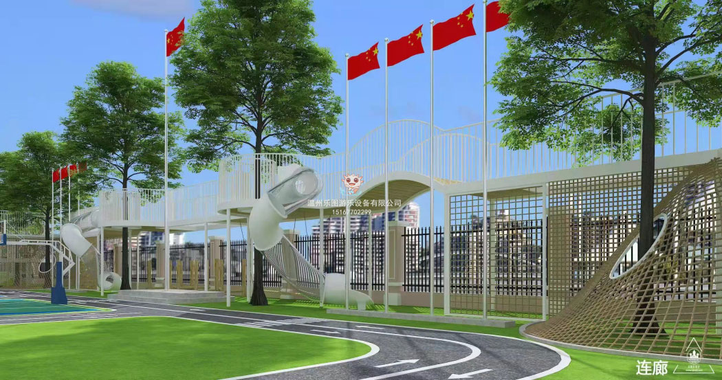 2. 安全性:如果幼兒園活動場地有限,如何打造幼兒園趣味玩具?設計師借助場地的資源特色,合理利用空間,打造創意、趣味十足的小空間區域,打造幼兒園戶外大玩具。幼兒園連廊游樂首先滿足《EN1176》或《GB T 28622-2012無動力類游樂設施》相關安全標準進行設計,有一定的運動及游戲設施,具有易達性、安全性、活動空間單一等特點,要求滿足兒童一般的戶外游戲活動需求。
