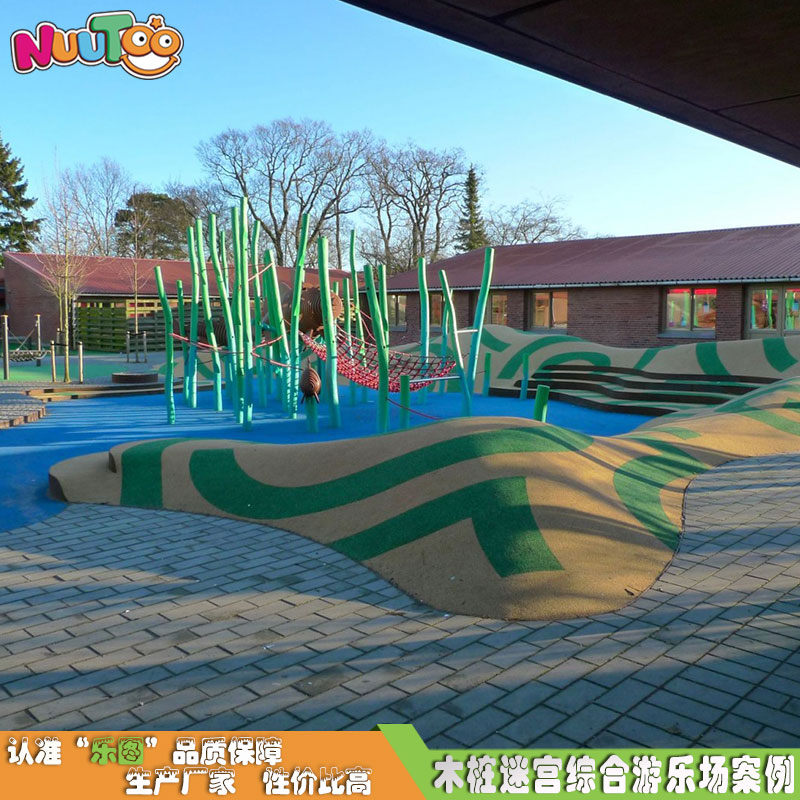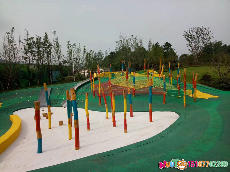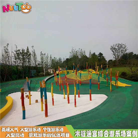 戶外非標游樂產品—木樁綜合迷宮項目于2017年正式完工,整個項目的占地面積高達800平米,其中涵蓋了單杠、迷宮滑梯、爬網、部分感官體驗項目等,屬于全面綜合類型的游樂場所。