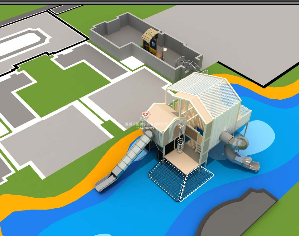 因為大型的場所人流量聚集非常多,我們想要實現的不僅僅是利益價值,其實還有一個視覺效果的差異,能夠讓大家主動去拍照,帶來其他更多的用戶。這些場所一般會以大型的景觀不銹鋼滑梯、木制雕刻游樂設施為主,起到一個裝飾作用。