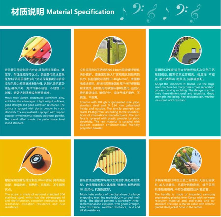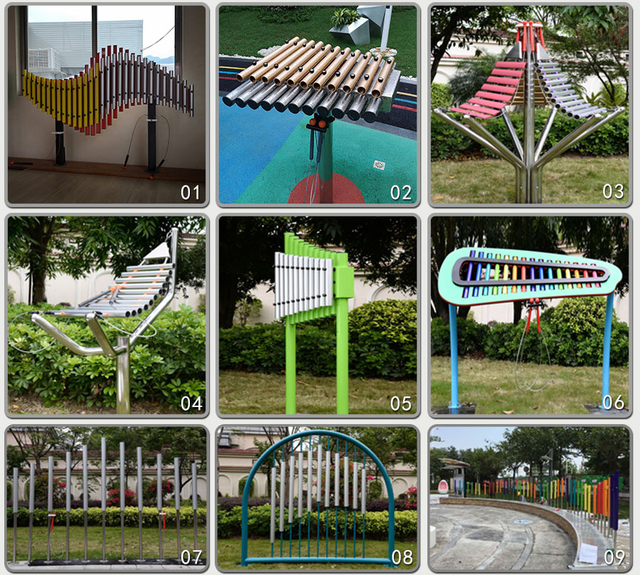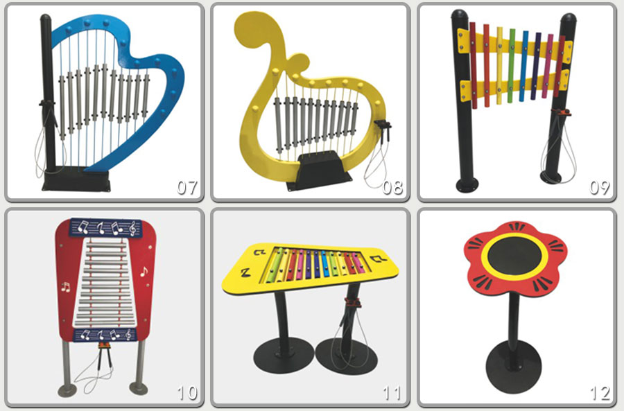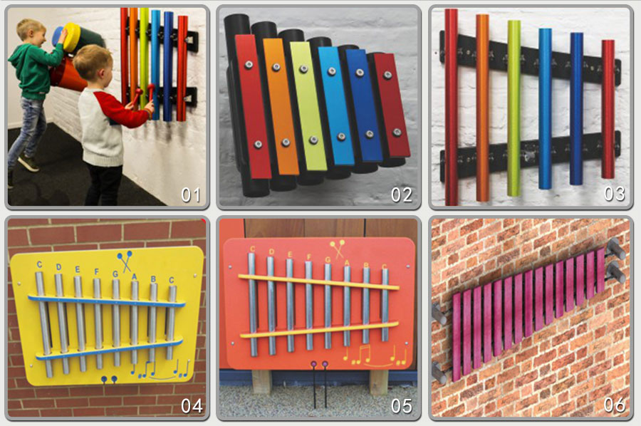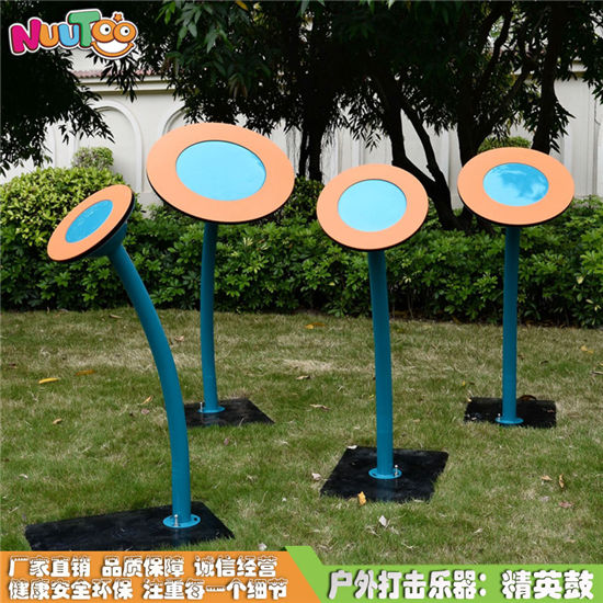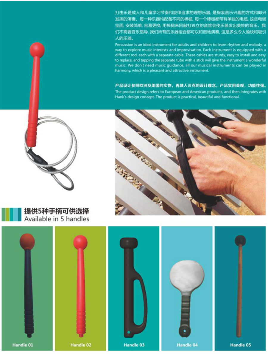 打擊樂器也叫“敲擊樂器”,是指敲打樂器本體而發出聲音的。其中有些是有固定音高的打擊樂器,如云鑼、編鐘等;其它還有一些無固定音高的打擊樂器,如拍板、梆子、板鼓、腰鼓、鈴鼓等。若根據打擊樂器不同的發音體來區分,可分為兩類:(1)“革鳴樂器”也叫“膜鳴樂器”,就是通過敲打蒙在樂器上的皮膜或革膜而發出的樂器,如各種鼓類樂器;(2)“體鳴樂器”,就是通過敲打樂器本體而發聲的,如鐘、木魚、各種鑼、鈸、鈴等。本公司基于樂器的本身特色,制作的各種戶外打擊樂器,如樂拍鼓,在保留了本身了樂器的元素,又增添了兒童愛玩的元素