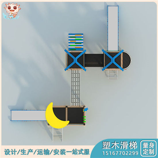 【功能模塊】本塑木兒童滑梯游樂設施滿足幼兒園基本動作訓練走、跑、跳、平衡、投、攀、爬、鉆、滑及玩撒內容,有滑梯、鉆洞、秋千、爬梯、玩撒平臺、攀爬繩網等等功能模塊