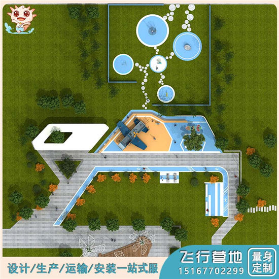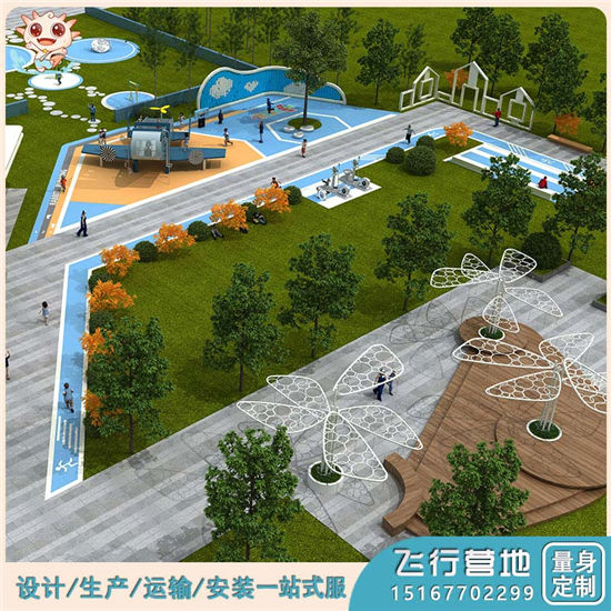 智慧成長空間飛行探索營地無動力研學智慧游樂場打造的是一個以飛機為主題的戶外游樂區,適合于小區的科技文化傳播,該游樂區把壓力實驗、光學、聲學等物理實驗通過游戲游樂化,整合成游樂健身區,包含了四大主題模塊: