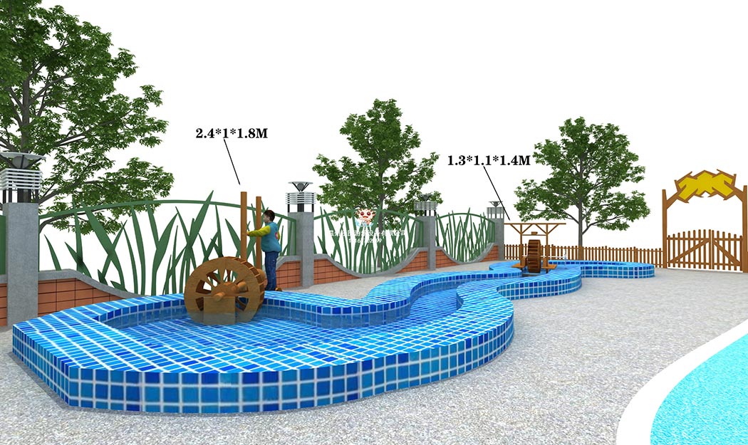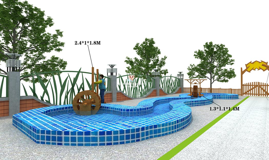 2. 安全性:設計師借助場地的資源特色,合理利用空間,打造創意、趣味十足的空間區域,打造大型水上游樂設備。設施滿足《EN1176》或《GB T 28622-2012無動力類游樂設施》相關安全標準進行設計,滿足人們的戶外游戲活動需求。