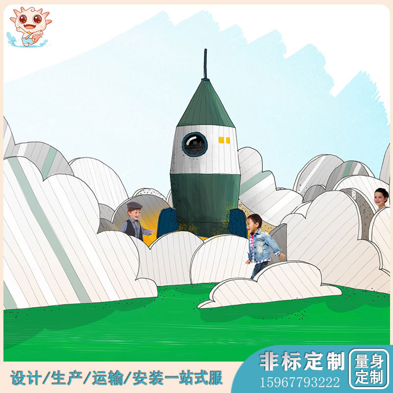 1、隨著“二胎政策”的放開,兒童消費市場逐步升溫,兒童游樂場所也隨之大量涌現,其創新與趣味要求更高,在細節設計上需要注重景觀和游樂相融合的概念,火箭非標定制游樂設施具象外觀,成為兒童樂園必不可少的點綴,戶外游樂場非標設施是雕塑與游樂設施相結合的新型游樂設備,絕不僅僅是視覺上的游戲,讓人感受到表面的愉悅。創造能夠讓兒童充分沉浸其中的娛樂世界,是游樂園景觀設計的出發點。