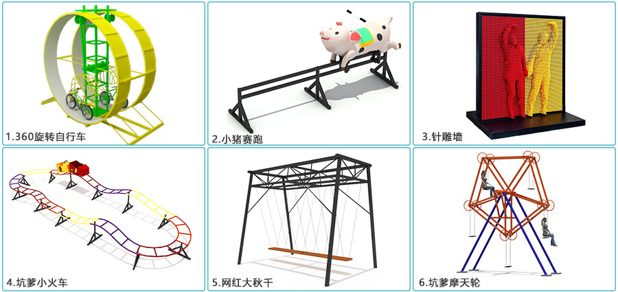 2、室外樂園可設單、雙或多人秋千,通過圓形或 S形等異形布置,營造豐富的秋千視野,這樣可以帶給游人更多的秋千氛圍感,在我們的建設中,有更多采用此種布置的秋千樂園,獲得明顯的好評,受到廣大游人群體的喜愛,還有一些整木秋千,被賦予一定的團隊拓展功能。