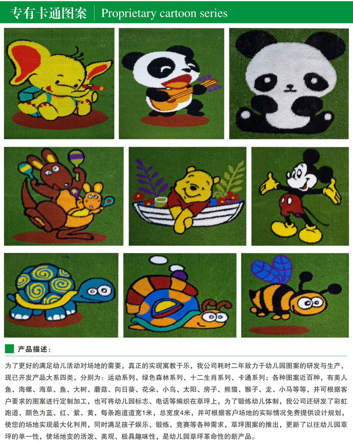 2,室內草坪底部軟而單薄,無支撐感,材料單一,工藝簡單,添加量多少,其質量難以保證,易風化,對運動保安全保障低。在擋墻草坪上,不僅能玩到再上面,更能讓人把草坪當作擋墻草坪毯子,還能將不同顏色的草坪拼接成不同圖案來開發思維。
