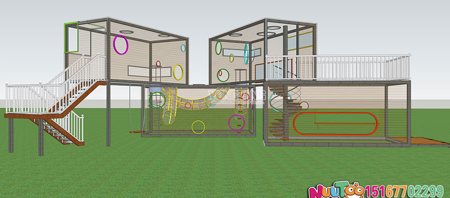 非標準定制集裝箱游樂設備產品可以根據客人與場地情況進行量身定制,可在公園,景區,別墅,度假村,森林,沙地,沙灘,草地,山坡等地方依山傍水而建,形成獨特個性化游樂設備設施,彰顯個性,與眾不同,全球定制,僅此一款,襯托您的眼光獨到,匠心另具!