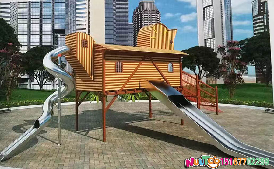 樂圖非標游樂英倫風木質組合滑梯 | |