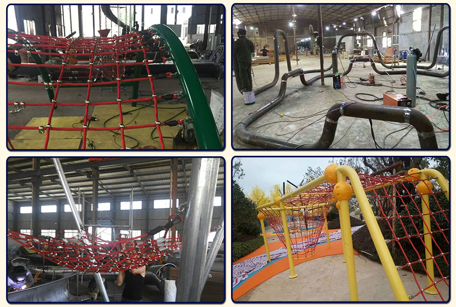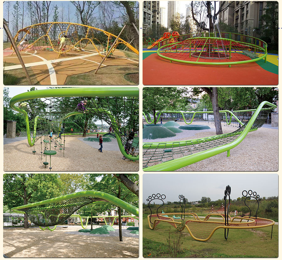 1、304不銹鋼/鍍鋅鋼管(選用) 2、304不銹鋼網/防腐戶外游樂專業環保繩網(選用) |