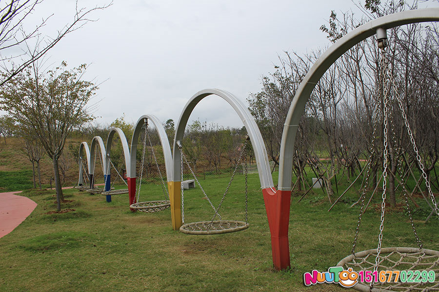 秋千的起源,可追溯到幾十萬年前的上古時代。那時,我們的祖先為了謀生,不得不上樹采摘野果或獵取野獸。在攀緣和奔跑中,他們往往抓住粗壯的蔓生植物,依靠藤條的搖蕩擺動,上樹或跨越溝澗,這是秋千最原始的雛形。隨著社會的發展,生活質量的提升,任何游樂玩具都不只是滿足客戶功能性要求,更多要從客戶的心理訴求出發,所以今天的個性化、多樣化注定是市場的主導。市場推動創新,秋千變得多樣化,樂圖推出來樹形秋千、圓形秋千、拱門秋千、懸掛秋千等獨特造型的秋千組合。
