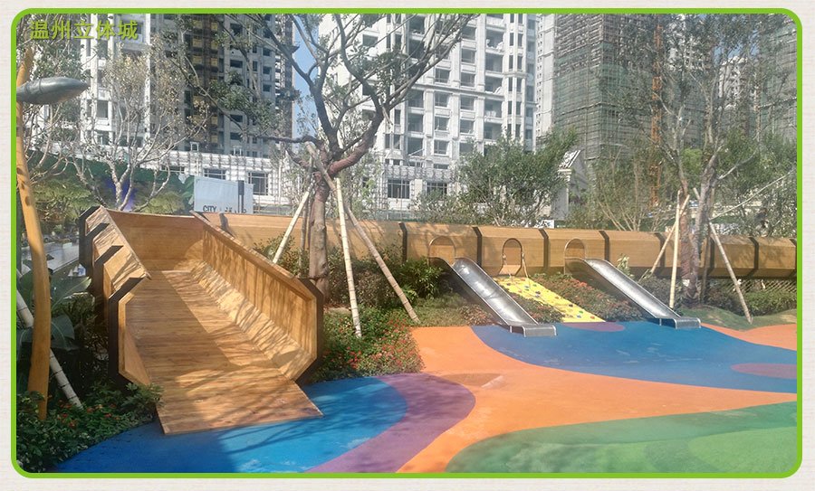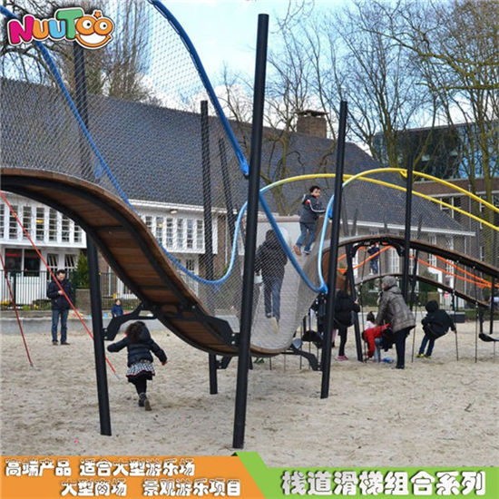 棧道游樂組合滑梯是樂圖游樂設備有限公司首先建造的公園,幼兒園,地產,游樂場高端非標定制產品,其中太原澳寶藍天幼兒園便是典型的國內案例