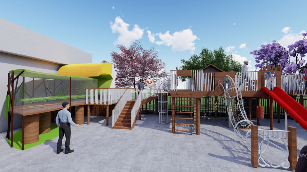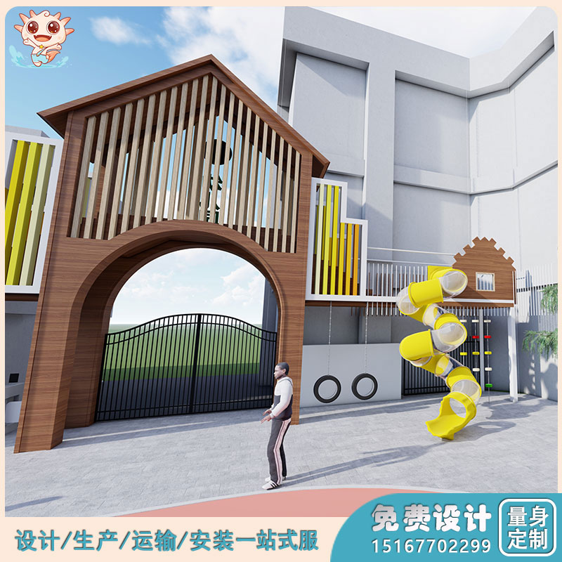 2. 安全性:如果幼兒園活動場地有限,如何打造幼兒園趣味玩具?設計師借助場地的資源特色,合理利用空間,打造創意、趣味十足的小空間區域,打造幼兒園戶外大玩具。定制化幼兒園戶外游樂場首先滿足《EN1176》或《GB T 28622-2012無動力類游樂設施》相關安全標準進行設計,有一定的運動及游戲設施,具有易達性、安全性、活動空間單一等特點,要求滿足兒童一般的戶外游戲活動需求。