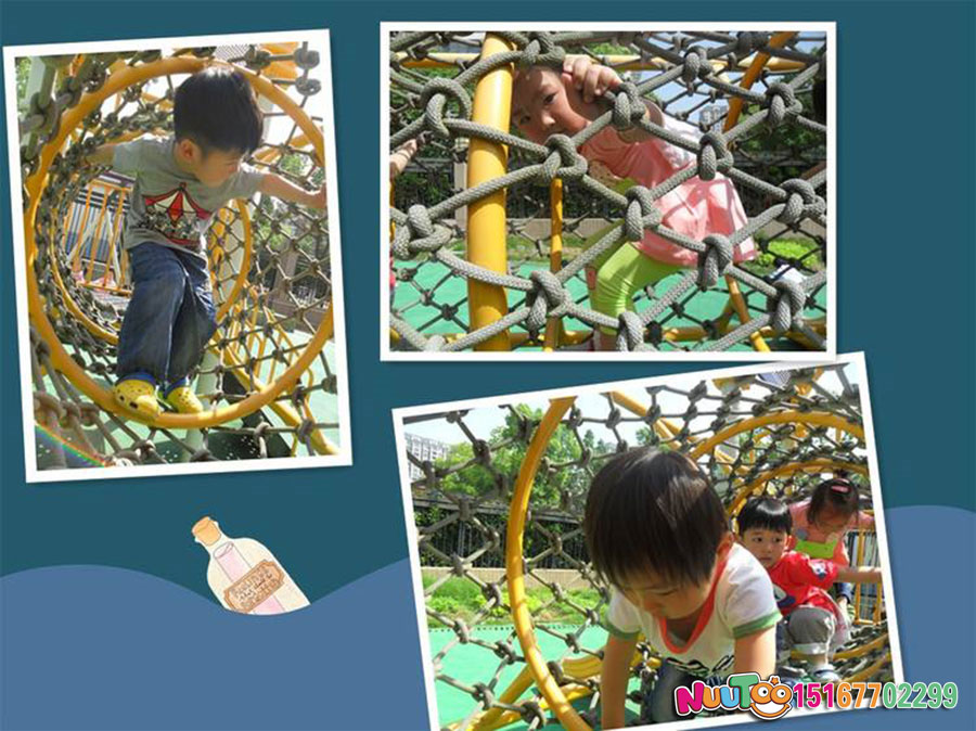 該款產(chǎn)品根據(jù)孩子們喜歡攀爬的天性進(jìn)行的獨家設(shè)計,不僅是款式還是安全性都是較好的,并且安全性非常高,繩網(wǎng)的顏色可以根據(jù)場地的顏色進(jìn)行定制,久用耐磨。并且我們在產(chǎn)品當(dāng)中使用了防紫外線因子,可以使用10年以上都不會退化,不管是什么樣功能的設(shè)備均可以自由組合搭配。