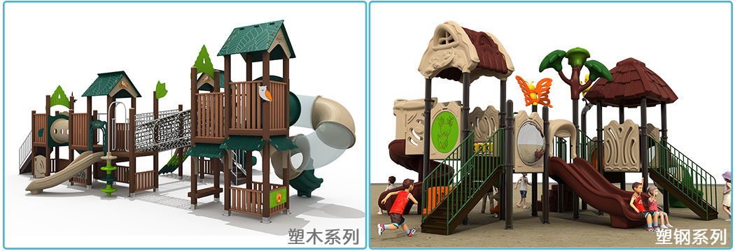 四、經典小區廣場兒童游樂設備_樹屋系列組合滑梯場景展示-4