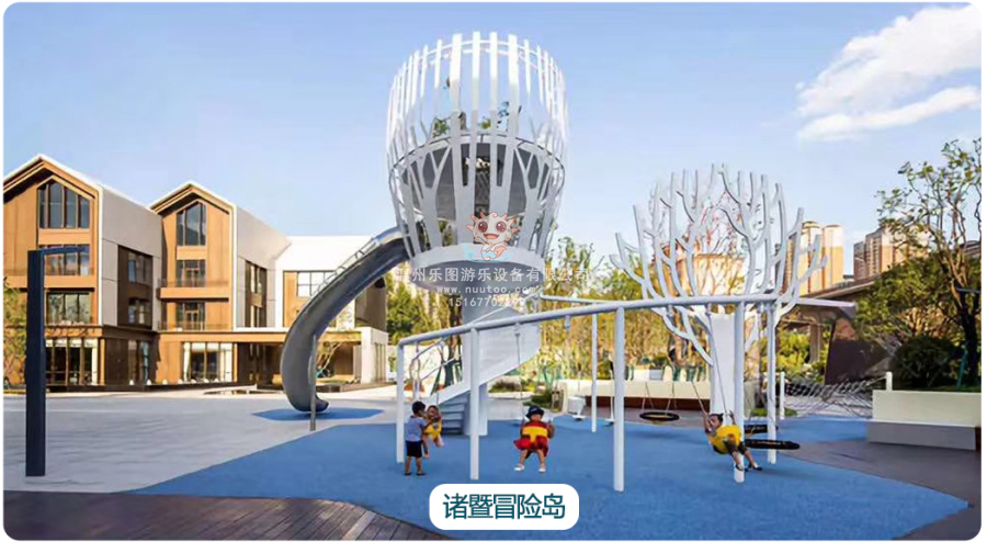 三、經典小區廣場兒童游樂設備_樹屋系列組合滑梯場景展示-3