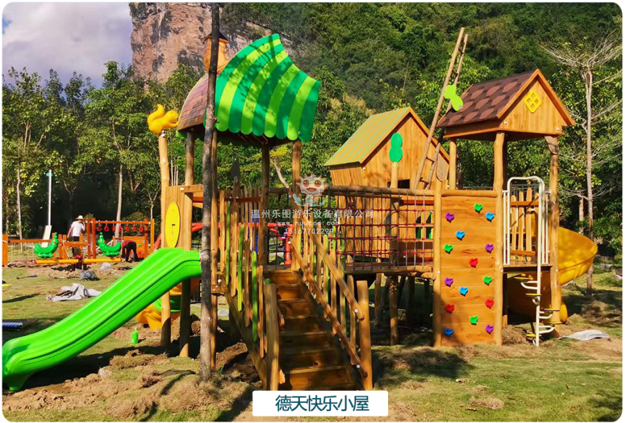 七、經典小區廣場兒童游樂設備_樹屋系列組合滑梯場景展示-7